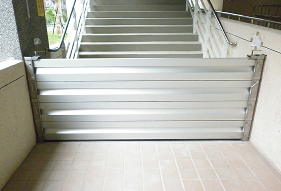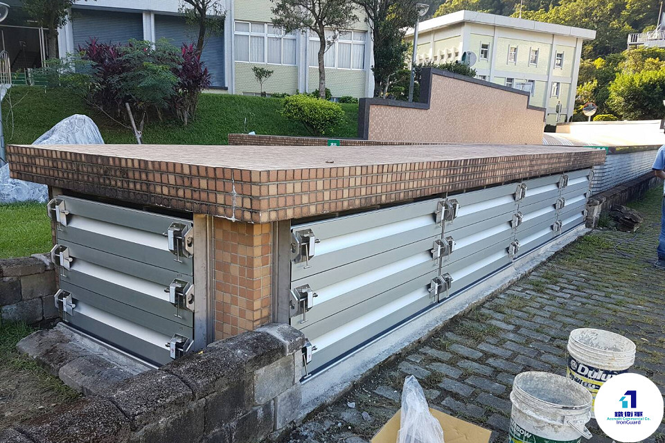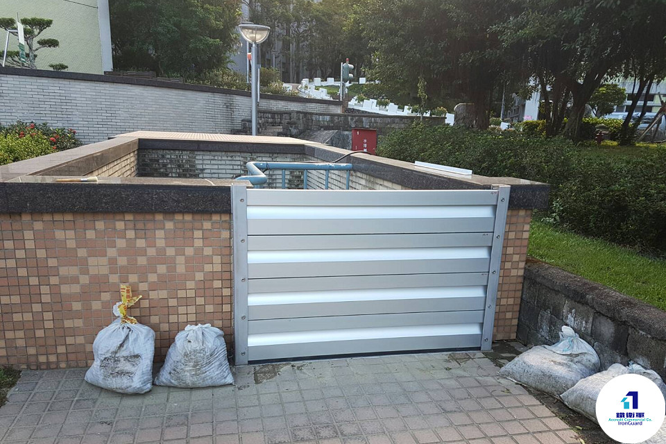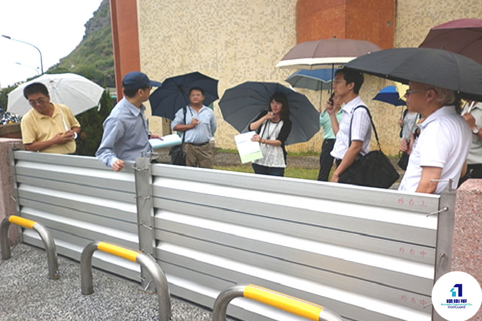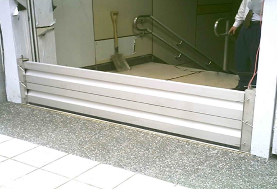 ③Demountable flood panels are inserted ④Flood barriers were successfully deployed